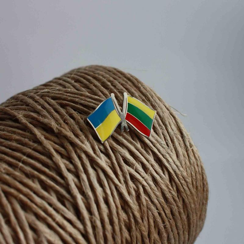 Значок на одяг прапори україни та литви на застібці з нікелевим покриттям