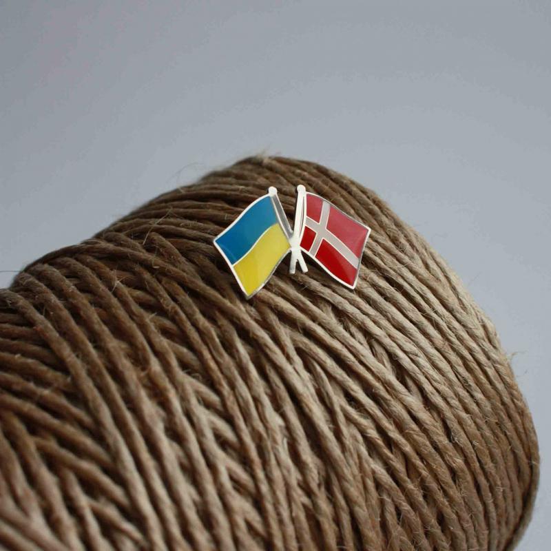 Значок на костюм прапори україни та данії на застібці з нікелевим покриттям