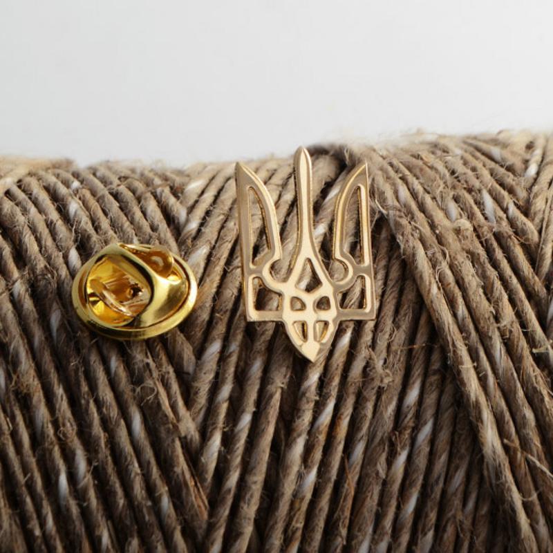 Значок герб україни тризуб на одяг повсякденний наскрізний з латуні з позолотою, жовтий (3...