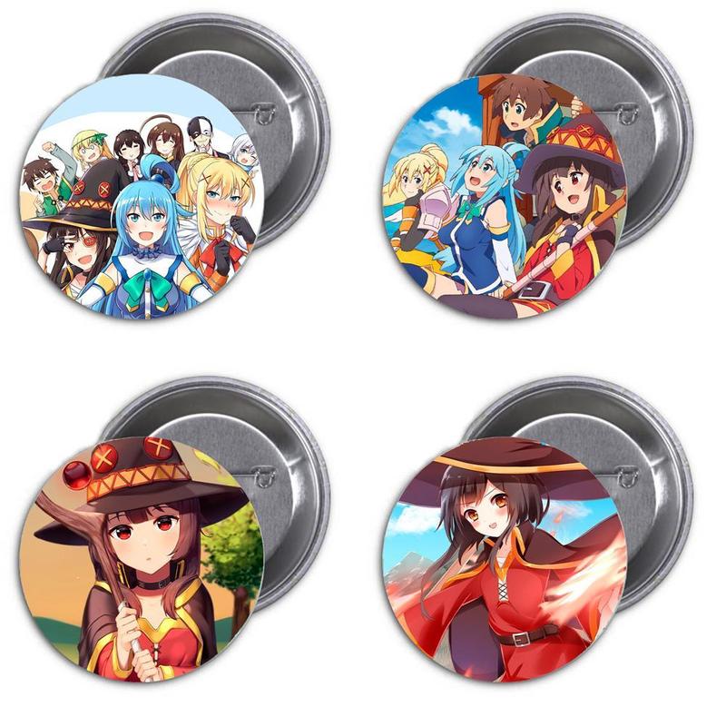 Значки аніме треос "цей чудовий світ" (konosuba) - набір 4 шт.