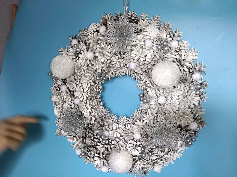 Тип подарунка: Оригінальний Шикарний Новорічний (Різдвяний) вінок на двері у біло-червоному кольорі. Вінок виготовлений з натуральних шишок з доповненням різного декору. Ручна робота. Діаметр 46см. Вінок має петлю ззаду, на яку його можна повісити. Приймаємо корпоративні замовлення. Відмінна прикраса інтер'єру магазину, будинку або офісу. Незвичайний подарунок для друзів і близьких.