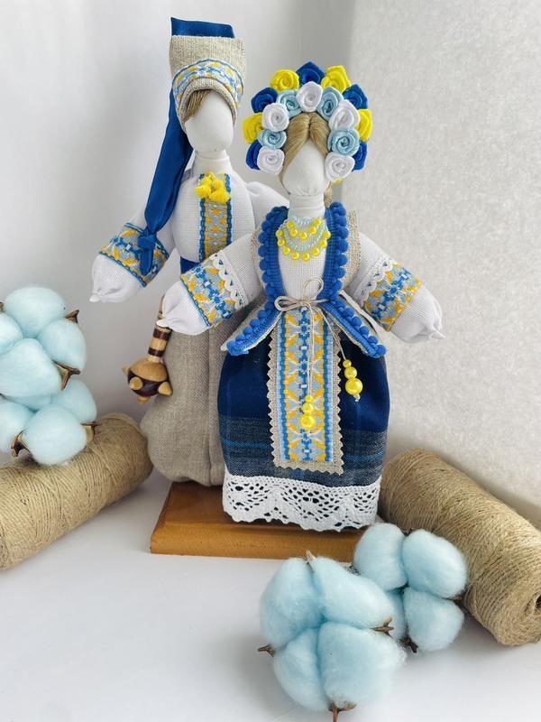 Нерозлучники» — це як сімейний портрет, вони народжуються при створенні сім′ї і передаються у спадок іншим поколінням. Лялька мотанка «Нерозлучники» – це окремий різновид обрядової ляльки, яка робилася на добробут і щастя. Це весільна подвійна лялька, що зображувала молодого й молоду. Такій подвійній ляльці роби ли одну руку на двох, що повинно було символізувати злагоджене любов′ю життя. Висота: 25-27 см