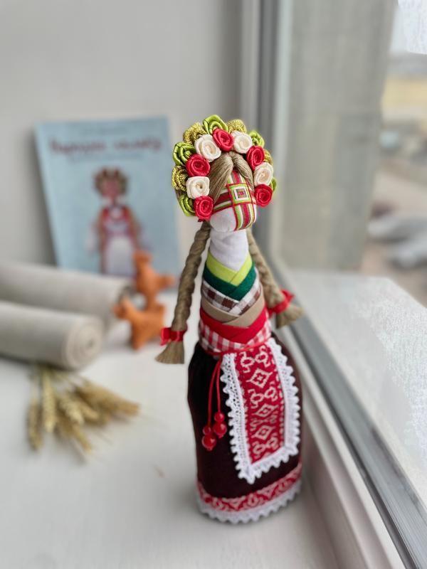 Назва ляльки : Капуста або 7 одежин. Значення: Лялечка допомагає дівчатам, які бажають вийти заміж зустріти свого єдиного і на все життя, зберегти любов, благополуччя в родині і щастя. Легенда створення: Її снова – березова палочка - символ чистоти та невинності. Лялечка має сім комірців, на кожен з яких дівчина повинна загадати характеристику майбутнього чоловіка (щедрий, добрий, багатий…). Лялька виготовлена без рук, щоб в заміжжі не було тяжкої праці. Цю лялечку наречена ставила на вікно — на вулицю. Молоді хлопці одразу бачили: у цьому будинку наречена вже дозріла, можна засилати сватів! Висота: 25-26 см