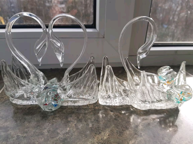 Тип подарунка: Сувеніри Кілька примірників у наявності Продаю, в чудовому стані, дві статуетки із лебедями. Робота оригінальна, завдяки вкрапленню різнокольорового скла, що надає виробу шикарного вигляду. Статуетку із одним лебедем, можна використовувати і як попільничку. Виробництво - радянське, пересилаю.