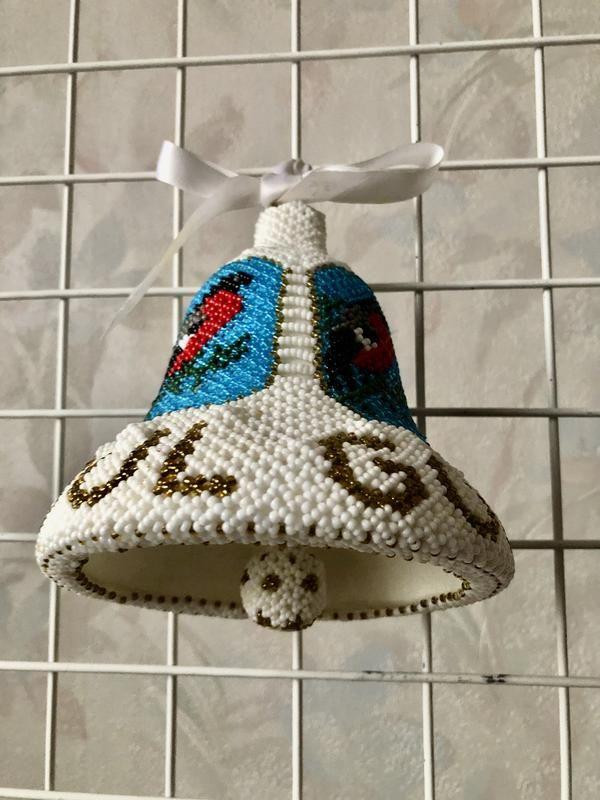 Різдвяний великий. дзвіночок з плетенного бісеру з медальйонами зі снегирями. Чудовий новорічний подарунок ручної роботи Додаткові характеристики: Тип: Новорічні статуетки