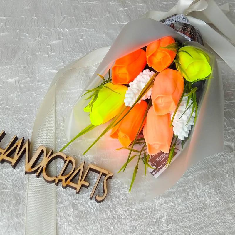 Тип подарунка: Букети Кілька примірників у наявності Ось і вони, мої фаворити свят! Тюльпани від ks_handicrafts... Як можна описати тюльпани? Їх можна тільки відчути! 7 мильних тюльпанів + 2 сиреньки! Висота букета близько 35 див. Колір, аромат на вибір! 200 грн.