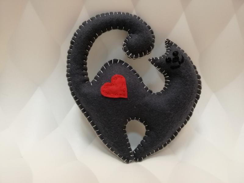 Кіт валентинка з фетру, наповнювач холофайбер. Розмір 14х12 см Ціна вказана за одну модель