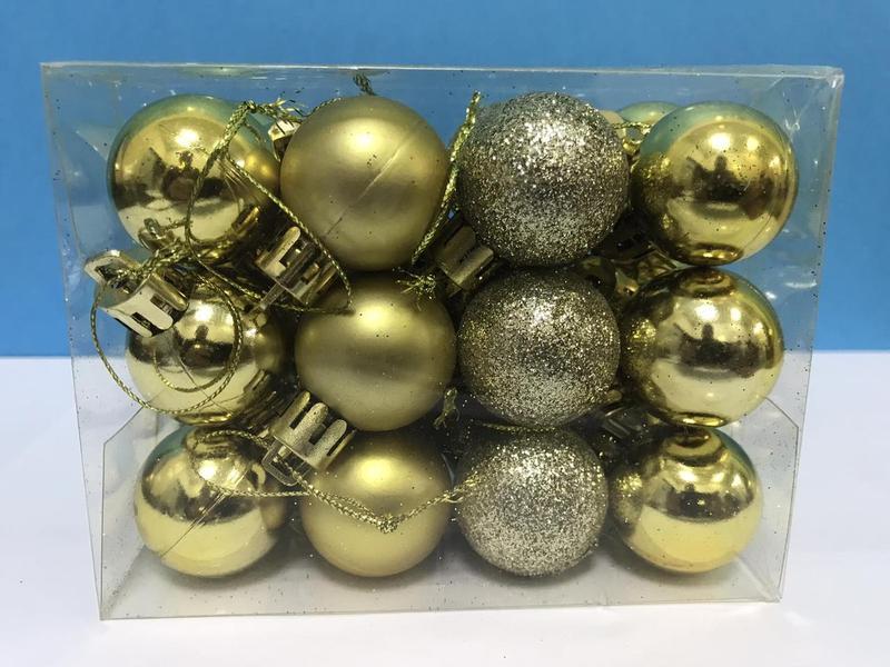 Набір ялинкових куль 3см, колір - золото, 24шт, 3 види
