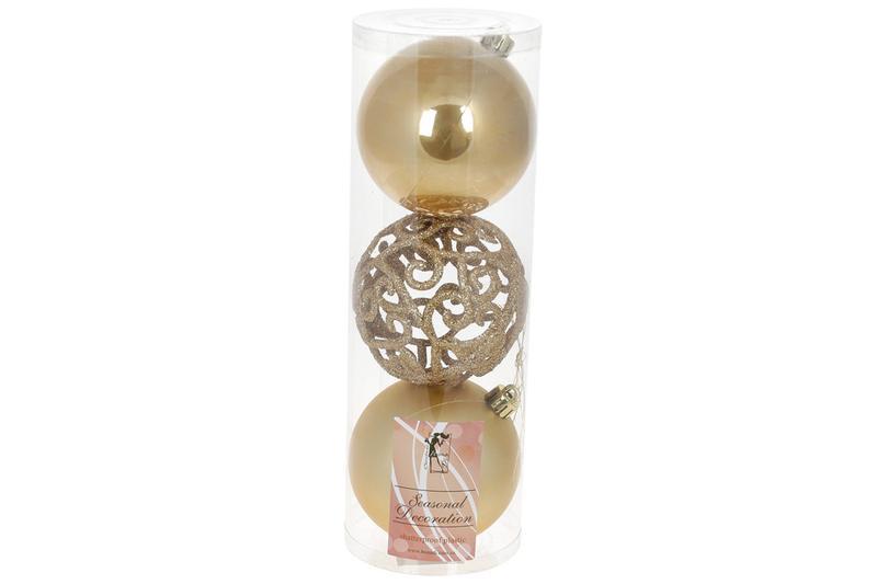 Набір ялинкових куль ажур 8см, колір - золото, 3шт