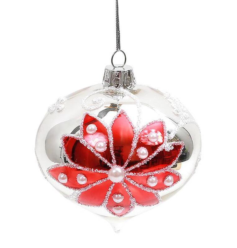 Набір (6 шт.) ялинкових прикрас 8 см, колір — срібло з червоним