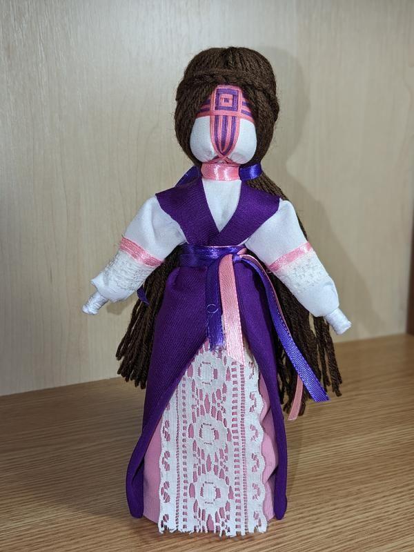 Лялька мотанка Доля ручної роботи. Фіолетовий колір- цей насичений колір є традиційно жіночним і здавна пов'язаний з королівськими багатствами та розкішшю. Оберіг на щасливу долю.