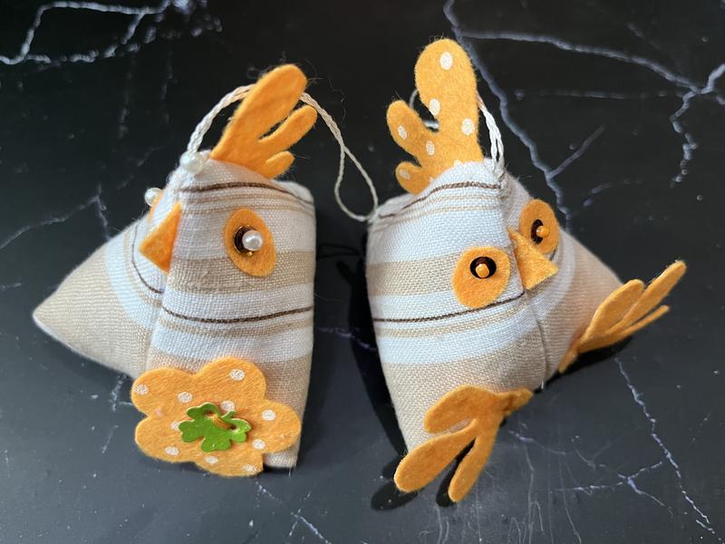 Півники 2 шт. 9 см : 8 см одним Лотом Пасхальний декор Підвіски 2 півника біло-оранжеві Ручна робота Ціна за 2 шт.