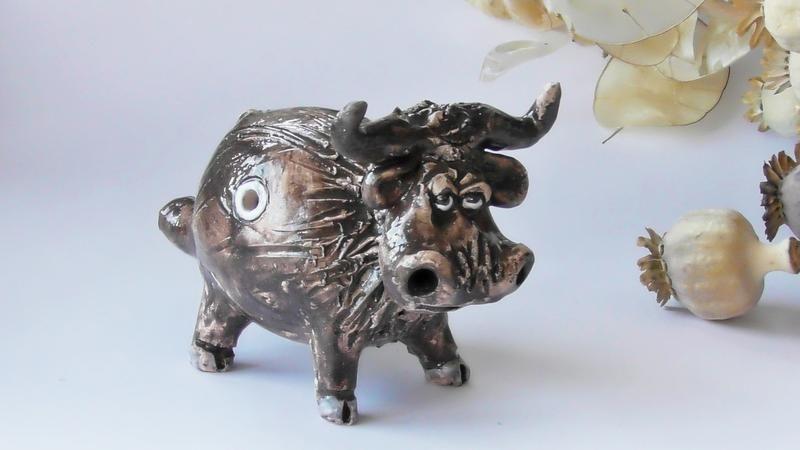 Свистулька керамическая, глиняная, в виде быка. (7x6см)