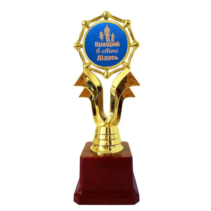 Статуетка 57261Т Кращий у світі дідусь На гребені хвилі - чудовий та оригінальний сюрприз, який можна подарувати дідусеві на ювілей, на день народження або просто як презент разом з якимось подарунком. Подарунок символічний і незвичайний, який говорить як дорогий для Вас вітається! Статуетку виконано у вигляді 3D композиції з написом українською мовою Кращий у світі дідусь. Фігурка виконана золотим кольором на класичному бордовому п'єдесталі. Статуетка упаковується в індивідуальний тубус з прозорого пластику. Унікальне пакування розроблене компанією Карнавал Приколів. На бордовому п'єдесталі статуетки може бути присутня імітація мармурових розлучень. Оригінальні нагороди та призи в наявності та на замовлення – відмінна ціна. Великий вибір кубків, медалей та нагородних статуеток для будь- якого приводу в інтернет магазині Карнавал Приколів.