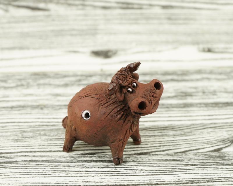 Этнический музыкальный инструмент, керамическая свистулька в виде быка. 6х6.5см. Товар под заказ
