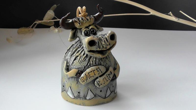 Принесіть удачу та затишок у ваш дім з цим чарівним керамічним дзвіночком у вигляді бика! Цей оригінальний дзвіночок, виготовлений з якісної кераміки, стане чудовим доповненням до вашого інтер'єру або душевним подарунком для близьких. Фігурка бика, символу сили, наполегливості та добробуту, виконана з увагою до деталей та має доброзичливий вираз. Особливості товару: Дизайн: Дзвіночок має форму стилізованого бика, що сидить. Його тіло слугує основою дзвіночка. Напис: На передній частині бика розміщено напис "Щастя в дім", що робить його не просто прикрасою, а й талісманом, який покликаний залучати позитивну енергію. Деталі: Бик має виразні очі, великі ніздрі, роги та милу корону на голові, що додає йому грайливості. Текстура поверхні імітує шерсть, а нижня частина дзвіночка прикрашена орнаментом. Кольорова гама: Виріб виконаний у приємних, приглушених тонах з переважанням сірого, бежевого та коричневого кольорів, що дозволяє йому легко вписатися в різні стилі інтер'єру. Призначення: Цей дзвіночок може слугувати як декоративний елемент, оберіг для дому, або ж використовуватися за прямим призначенням, видаючи приємний дзвін. Символізм: Бик традиційно асоціюється з процвітанням, стабільністю та сімейним благополуччям. Напис "Щастя в дім" підсилює позитивне значення цього сувеніру. Цей дзвіночок-бик стане чудовим подарунком на новосілля, день народження, або просто як знак уваги та побажання щастя вашим друзям та рідним. Він неодмінно приверне увагу та створить теплу, затишну атмосферу в будь-якому домі. 12х7см. Товар виготовляється на замовлення