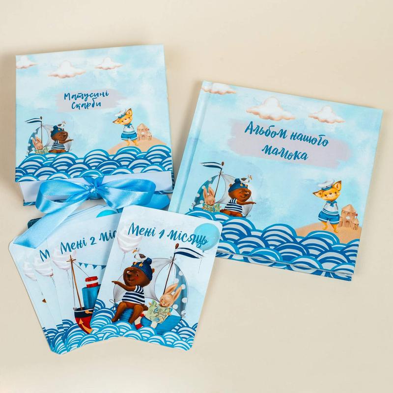 Набір "море" для хлопчика перший альбом, картки для фотосессії, матусині скарби