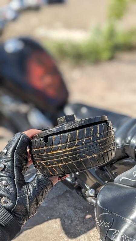 Очень крутой аксессуар и элемент декора для всех ценителей авто и мототематики. Достаточно объемный ящик, можно складывать украшения, всевозможные безделушки. Небольшие отверстия по бокам позволяют удобно использовать в качестве пепельницы. Есть варианты раскраски