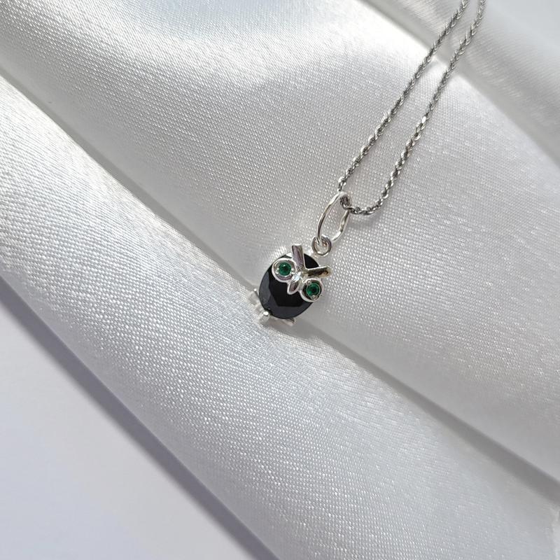 Серебряная подвеска подвес сова с зелеными глазками серебро 925 пробы 38019 1.90г