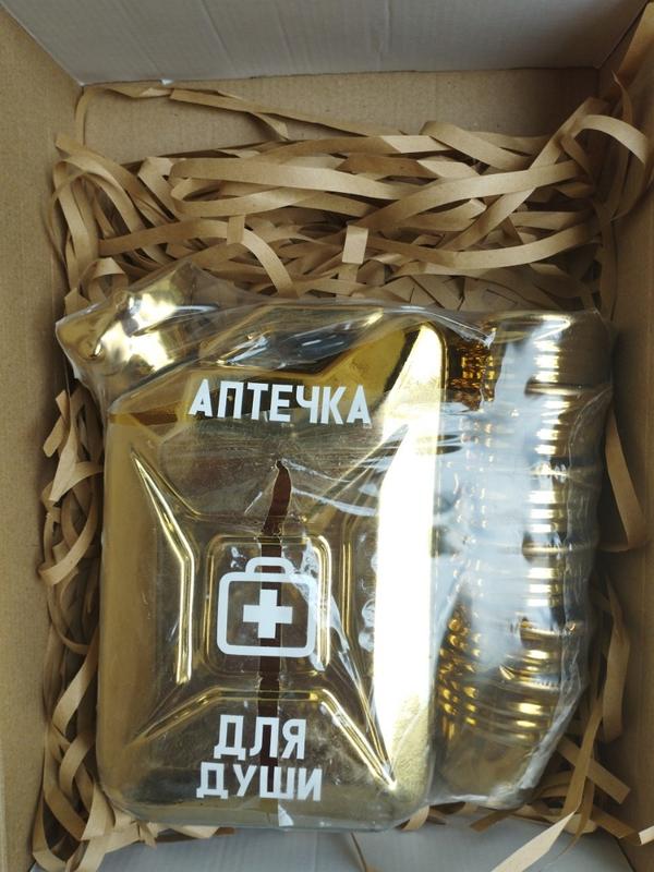 Оригінальний подарунковий набір каністра бар . Подарунок оформлений в упаковці з паперовим наповненням і відразу готовий до вручення. Подарунковий набір зроблений з кераміки з золотим покриттям. Пробка закривається герметично, що дозволить уникнути випадкових вилиття цікавого вмісту. Об'єм - 1л Чарочки у формі відра - 6 штук.