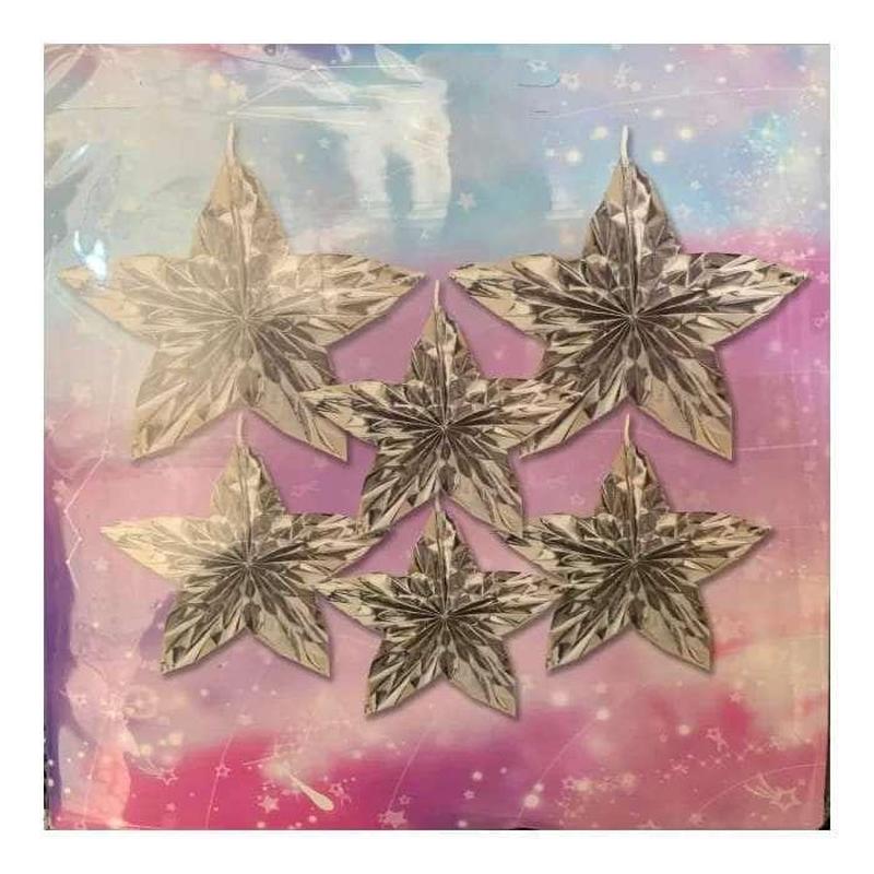 Веер для декора серебряные звёздочки Подвесной декор веер-гармошка. Выполнены из фольги. Может использоваться, как праздничный атрибут вашего мероприятия. Такие веера подвешивают на леску или ленты. Из них собирают красивейшие панно на стене. В наборе 6шт. Набор вееров для декора продаются в сложенном виде. Собирается очень просто. Для этого аккуратно разложите, как обычный веер, только дальше, образуя круг и скрепите скрепкой (входит в комплект). Легко складывается назад, можно использовать много раз.