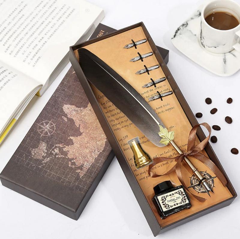 Вінтажний подарунковий набір для каліграфії ручка перова (сірий)