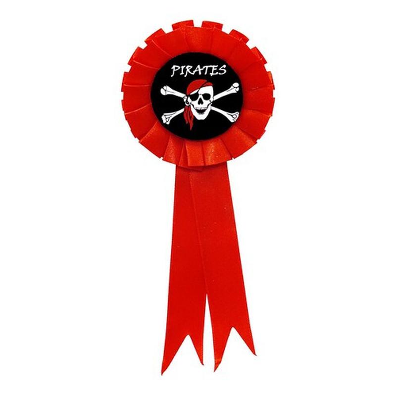 Значок, розетка на английской булавке с лентами для пирата. Диаметр значка 7,5 см, высота с лентами 17 см.