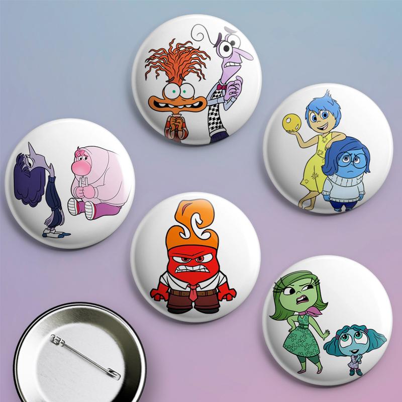 Закатні значки з принтом головоломка емоції металеві на шпильці 56 мм х 5 штук
