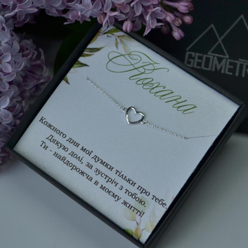 Подарунок дівчині на день народження - браслет серце та листівка
