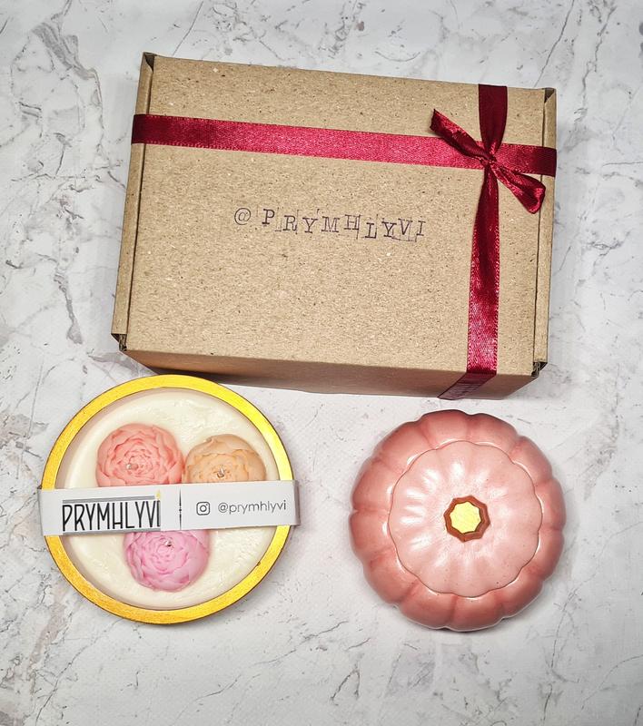 Пропоную недорогі, але небанальні та душевні подарунки до дня учителя. Мають подарункове пакування. Замовляючи їх, ви отримаєте одразу готові стильні пдаруночки, готові до вручення. 1. Ароматична свічка з соєвого воску у ємності "гарбузик". Популярний і корисний декор для створення атмосфери затишку та релаксації. 200 грн 2. Соєва ароматична свічка з квітами. Вони не зав'януть, та довго тішитимуть своїм виглядом та ароматом. 220 грн 3. Можна самостійно обрати наповнення вашого подарунку з асортименту сторінки в інсті Prymhlyvi. Товари з наявності відправляємо в день оплати або на наступний. Виготовлення на замовлення близько 5 днів в залежності від кількості і складності.