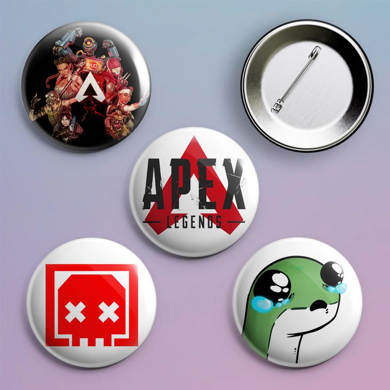 Закатні значки з принтом гри apex legends металеві на шпильці 56 мм х 4 штуки