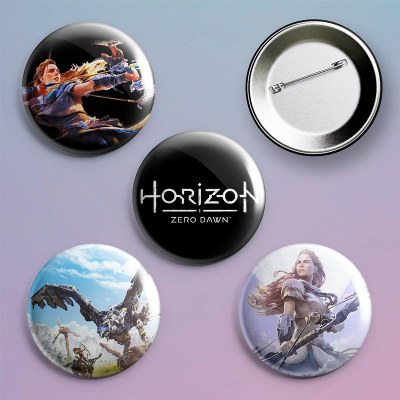 Закатні значки з принтом гри horizon zero dawn металеві на шпильці 56 мм х 4 штуки