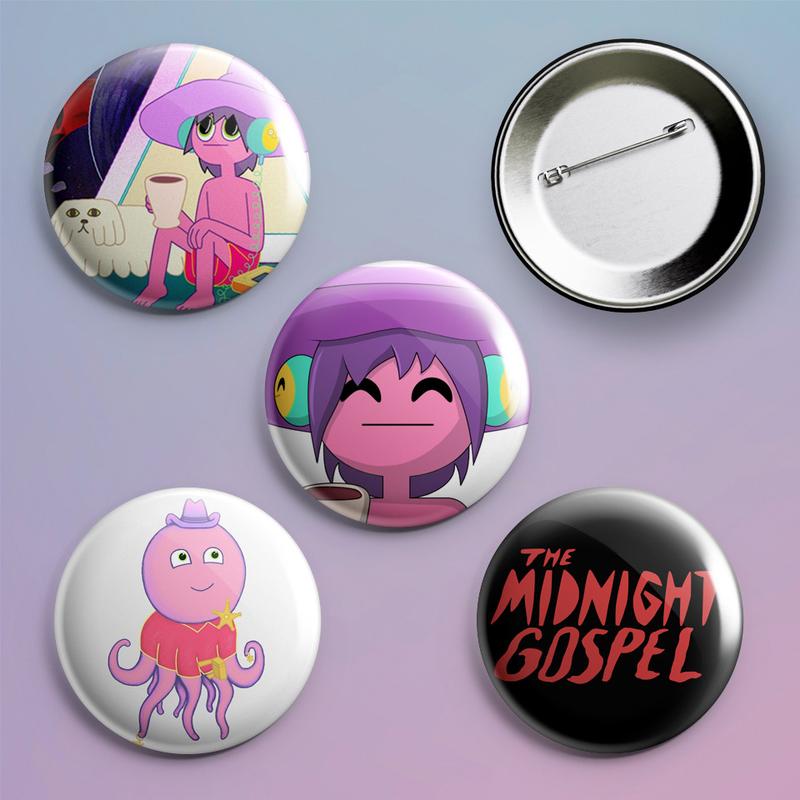 Закатні значки з принтом північні одкровення the midnight gospel металеві на шпильці 56 мм...