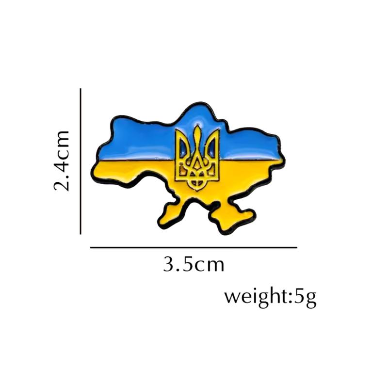 Патріотична брошка-значок, Ukraine Map. Значок з мапою України та тризубом, українська брошка на одяг