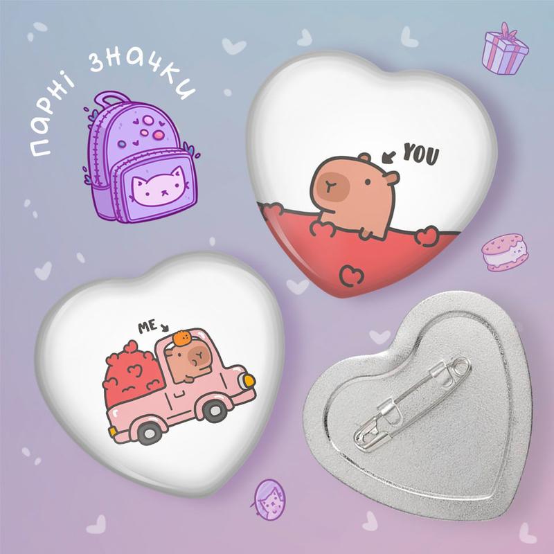 Парні значки піни серця можна використовувати як бейджик або прикраса для рюкзака. Виготовлення значків протягом 3 робочих днів.