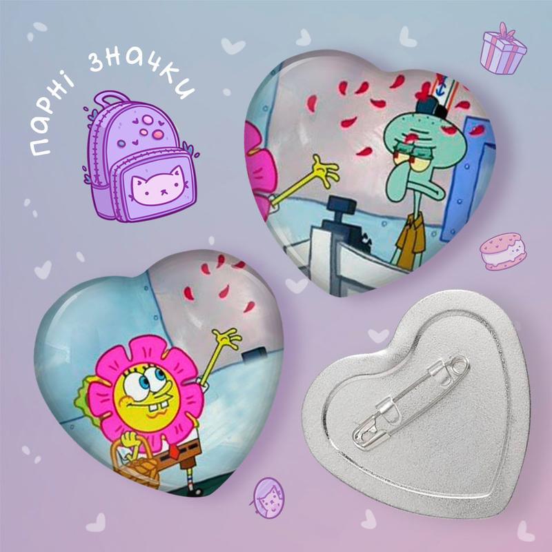 Парные значки пины сердечки комплект губка боб и сквидвард