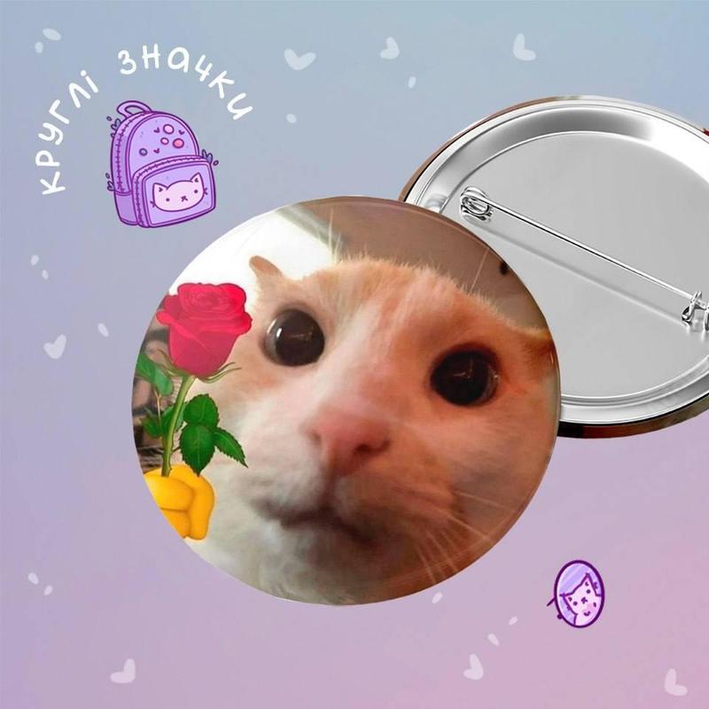 Пін значок на рюкзак кіт з трояндою 56 мм