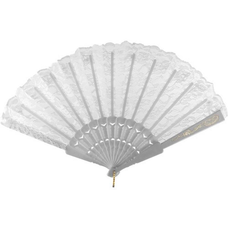 Карнавальный пластиковый белый веер с белым гипюром. Материал Веер ― Пластик, искусственная ткань Размер Высота 24 см.
