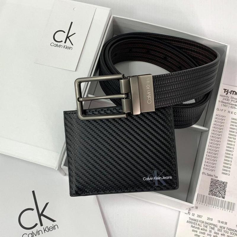 Подарунковий набір чоловічий calvin klein чорний шкіряний ремінь і гаманець із натуральної...