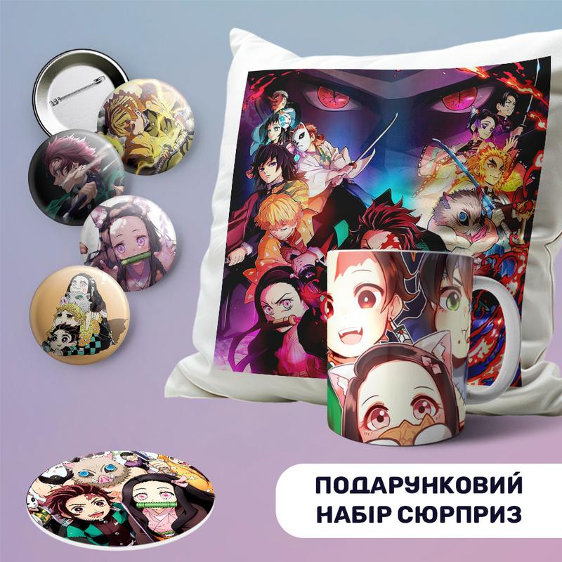 Подарунковий бокс набір сувенірів товари клинок розсікаючий демонів demon slayer аніме бок...