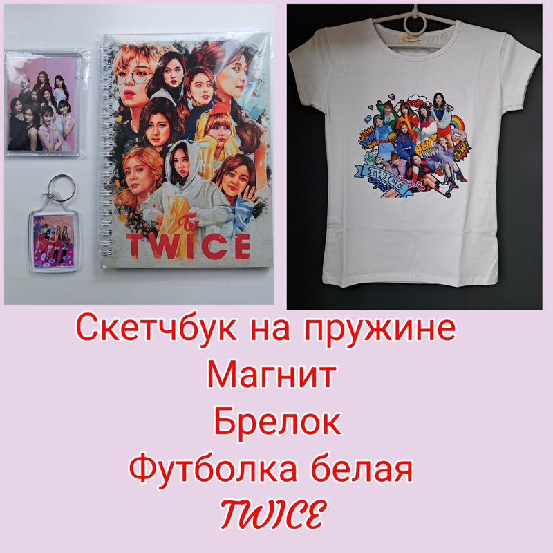 Скетчбук на пружине + Магнит + Брелок + Футболка белая TWICE Твайс
