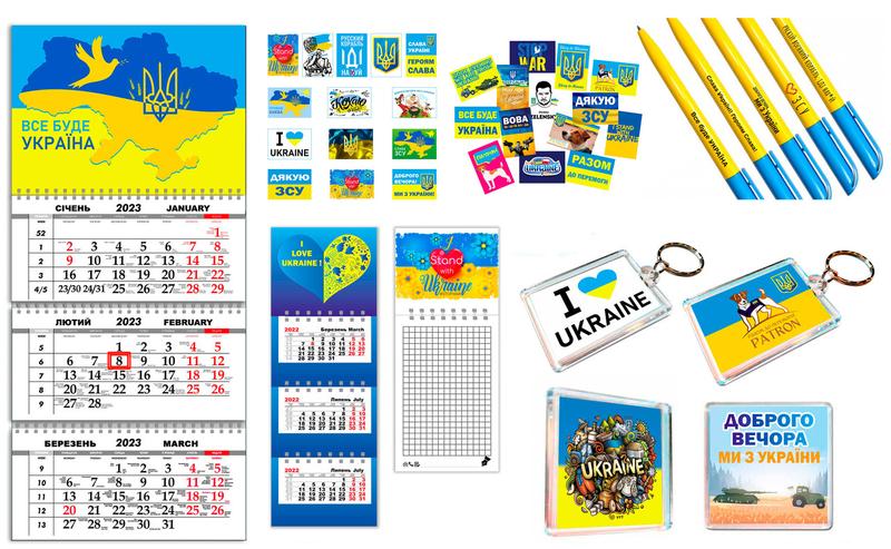Набір це Магніти (розмір 65мм на 65мм) 2 шт Блокнот для записів на магніті (8,5 на 21 см) 1 шт Календарі сувенірного формату на магніті (21 см на 8,5 см) 1 шт Календар настінний квартальний на 3 пружинах, на 2024 рік (29,7х61 см) 1 шт Брелоки (5,5 на 4 см) 2 шт Набір ручок 5 шт Стікери наклейки самоклеючий папір (5_3,5 см) 28 шт