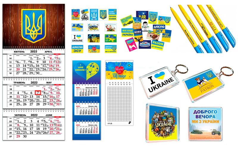 Набір це Магніти (розмір 65мм на 65мм) 2 шт Блокнот для записів на магніті (8,5 на 21 см) 1 шт Календарі сувенірного формату на магніті (21 см на 8,5 см) 1 шт Календар настінний квартальний на 3 пружинах, на 2024 рік (29,7х61 см) 1 шт Брелоки (5,5 на 4 см) 2 шт Набір ручок 5 шт Стікери наклейки самоклеючий папір (5_3,5 см) 28 шт