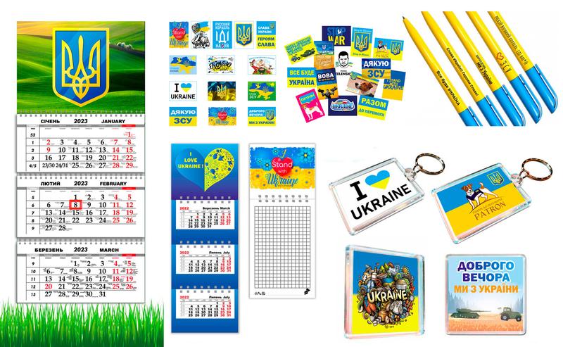 Набір це Магніти (розмір 65мм на 65мм) 2 шт Блокнот для записів на магніті (8,5 на 21 см) 1 шт Календарі сувенірного формату на магніті (21 см на 8,5 см) 1 шт Календар настінний квартальний на 3 пружинах, на 2024 рік (29,7х61 см) 1 шт Брелоки (5,5 на 4 см) 2 шт Набір ручок 5 шт Стікери наклейки самоклеючий папір (5_3,5 см) 28 шт