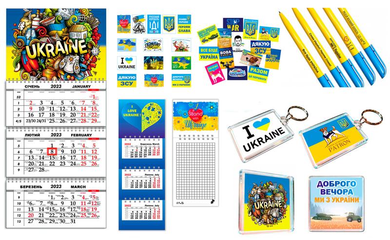 Набір це Магніти (розмір 65мм на 65мм) 2 шт Блокнот для записів на магніті (8,5 на 21 см) 1 шт Календарі сувенірного формату на магніті (21 см на 8,5 см) 1 шт Календар настінний квартальний на 3 пружинах, на 2024 рік (29,7х61 см) 1 шт Брелоки (5,5 на 4 см) 2 шт Набір ручок 5 шт Стікери наклейки самоклеючий папір (5_3,5 см) 28 шт