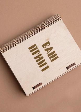 Правильне пакування подарунка -- це окремий вид мистецтва, який не менш важливий, ніж сам подарунок. Саме від упакування залежить первинний "Вау"-ефект. Ми поділимося з вами одним лайфхаком: якщо даруєте крутий подарунок крутій людині, пакуйте подарунок у не менш круте упаковування. Саме тому ми зробили окрему дерев'яну коробку для портмоне, на якій можна вигравіювати ваші особисті побажання близькій людині.