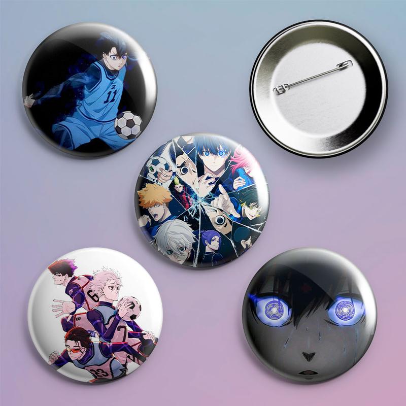 Пины значки на рюкзак аниме синяя тюрьма блю лок blue lock 56 мм х 4 штуки