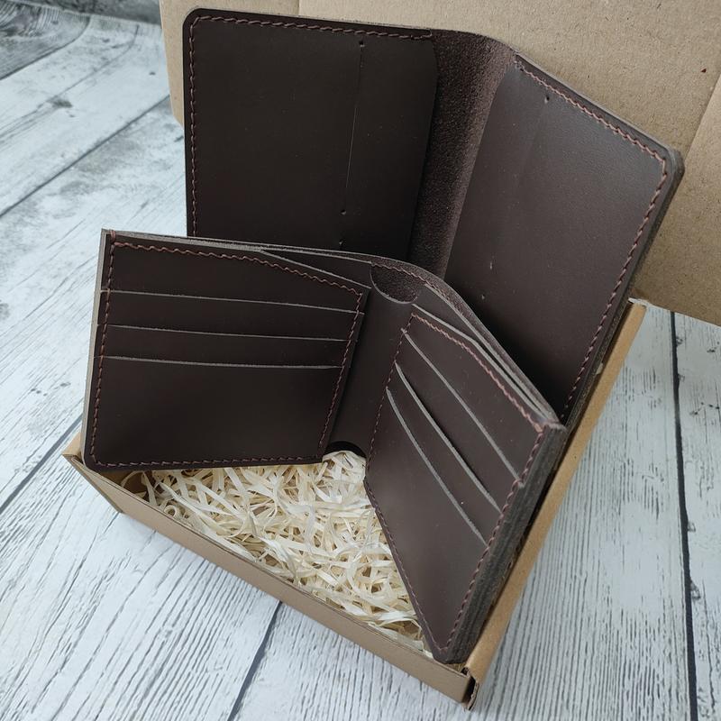 Подарочный набор для особенного мужчины. Вы ищете идеальный подарок для особенного мужчины в вашей жизни? Наши кожаные изделия, созданные вручную с любовью и мастерством, являются олицетворением стиля, качества и утонченности. Этот набор - это не просто подарок, это произведение искусства, которое призвано подчеркнуть индивидуальность и уникальность каждого обладателя. Что включено в набор: 1. Кожаный кошелек: Этот кошелек сделан из высококачественной натуральной кожи, которая со временем становится только красивее. Он имеет удобные отделения для кредитных карт, наличных и документов, а также элегантное место для хранения монет. Подчеркните стиль вашего мужчины с этим кошельком. 2. Кожаная обложка на паспорт (обложка для документов): Классическая обложка для документов, в отделения под пластиковые карты, или документы размером с банковскую карту. Почему наш набор уникален: - Все изделия изготавливаются вручную мастерами, которые предают им неповторимый характер. - Мы используем только высококачественную натуральную кожу, что обеспечивает долговечность и элегантность каждого изделия. - Наш дизайн отражает современную элегантность и функциональность. Подарите уникальность и стиль своему мужчине. Закажите наш подарочный набор сегодня и увидьте, как его глаза загораются от радости.
