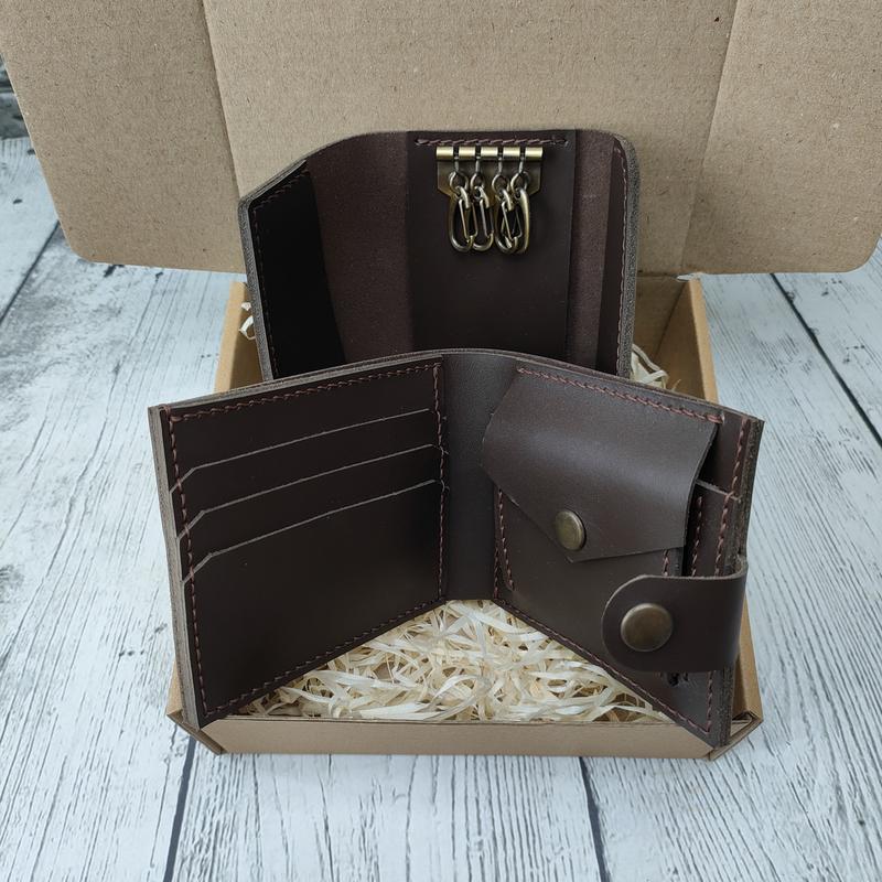 Подарунковий набір для особливого чоловіка. Ви шукаєте ідеальний подарунок для особливого чоловіка у вашому житті? Наші шкіряні вироби, створені вручну з любов'ю та майстерністю, є уособленням стилю, якості та витонченості. Цей набір - це не просто подарунок, це витвір мистецтва, який покликаний підкреслити індивідуальність та унікальність кожного власника. Що включено до набору: 1. Шкіряний гаманець: Цей гаманець зроблений з високоякісної натуральної шкіри, яка згодом стає красивішою. Він має зручні відділення для кредитних карт, готівки та документів, а також елегантне місце для зберігання монет. Підкресліть стиль вашого чоловіка із цим гаманцем. 2. Шкіряна ключниця : Ваші ключі будуть завжди під рукою і чудово організовані. Чому наш набір унікальний: Всі вироби виготовляються вручну майстрами, які надають їм неповторного характеру. Ми використовуємо лише високоякісну натуральну шкіру, що забезпечує довговічність та елегантність кожного виробу. Наш дизайн відображає сучасну елегантність та функціональність. Подаруйте унікальність та стиль своєму чоловікові. Замовте наш подарунковий набір сьогодні та побачте, як його очі спалахують від радості.