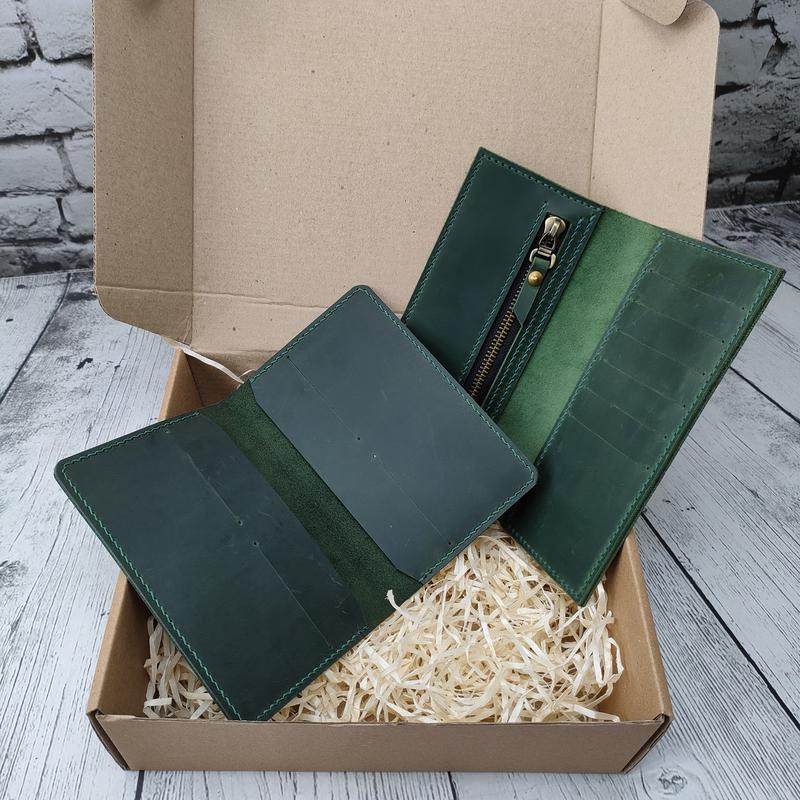 Подарунковий набір для особливого чоловіка. Ви шукаєте ідеальний подарунок для особливого чоловіка у вашому житті? Наші шкіряні вироби, створені вручну з любов'ю та майстерністю, є уособленням стилю, якості та витонченості. Цей набір - це не просто подарунок, це витвір мистецтва, який покликаний підкреслити індивідуальність та унікальність кожного власника. Що включено до набору: 1. Шкіряний гаманець: Цей гаманець зроблений з високоякісної натуральної шкіри, яка згодом стає красивішою. Він має зручні відділення для кредитних карт, готівки та документів, а також елегантне місце для зберігання монет. Підкресліть стиль вашого чоловіка із цим гаманцем. 2. Шкіряна обкладинка на паспорт (обкладинка для документів): Класична обкладинка для документів, відділення під пластикові картки, або документи розміром з банківську картку. Чому наш набір унікальний: Всі вироби виготовляються вручну майстрами, які надають їм неповторного характеру. Ми використовуємо лише високоякісну натуральну шкіру, що забезпечує довговічність та елегантність кожного виробу. Наш дизайн відображає сучасну елегантність та функціональність. Подаруйте унікальність та стиль своєму чоловікові. Замовте наш подарунковий набір сьогодні та побачте, як його очі спалахують від радості.